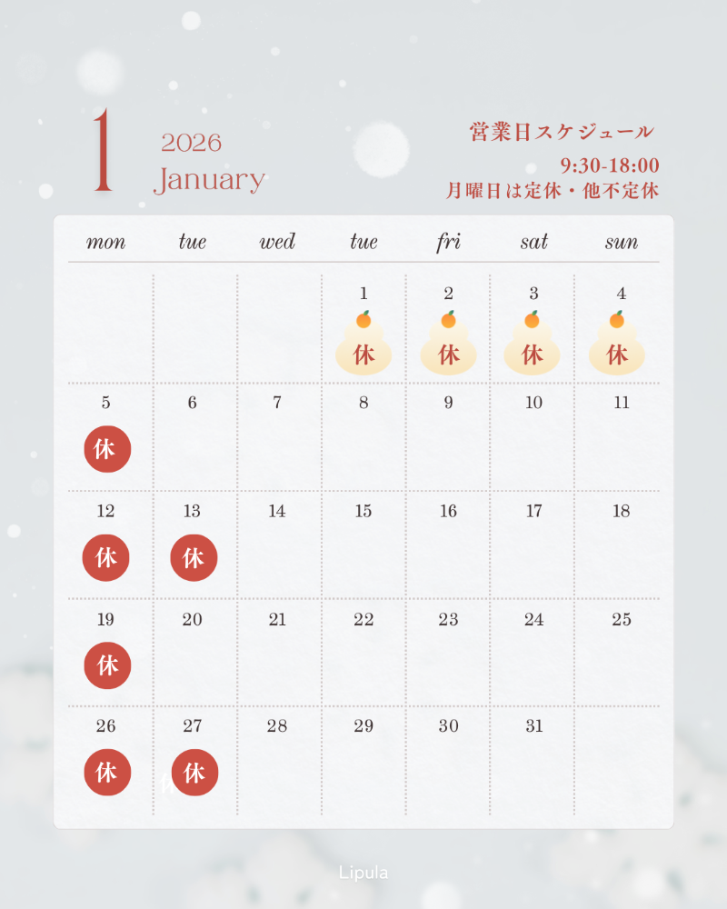 月曜日定休・駐車場完備